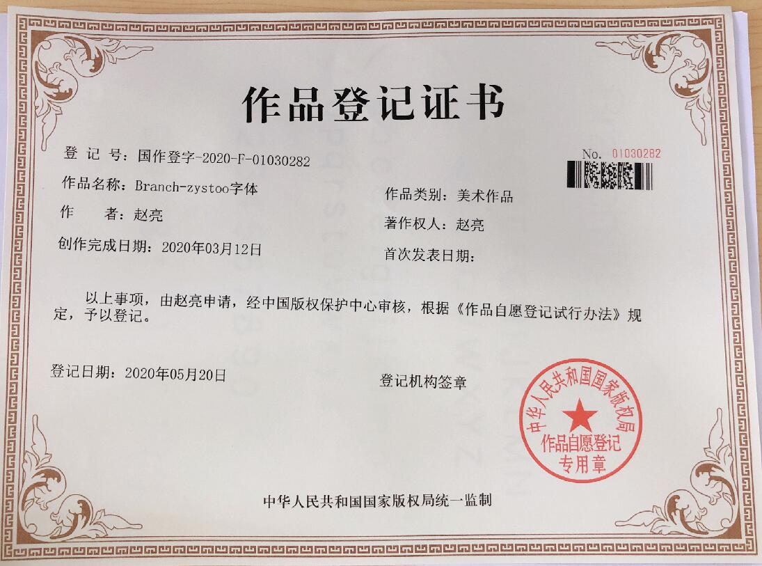 字体版权证书