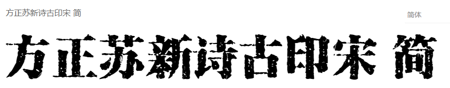 字库编码:大陆简体(GB2312-80) 分类:宋体 字体介绍: 《方正苏新诗古印宋》吸取了古代活版印刷字体的外观特点,并在其基础上进行斑驳仿古处理,是由电脑手写后再调整,从而形成了苏新诗古印宋字体,比较适合广告制作、平面设计、印刷品、书籍封面中使用,增强作品显示效果。
