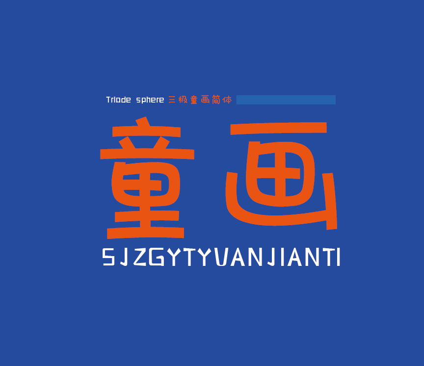 三极瞳画简体运用童趣设计,部分点画用立体圆点,使得字形生动活泼,整体风格使用儿童书写的轻松随意,笔画简洁随性。字形饱满拙趣,明快可爱。适用于少儿类读物、书刊、品牌广告、母婴用品包装设计以及社交网络个性化用字。