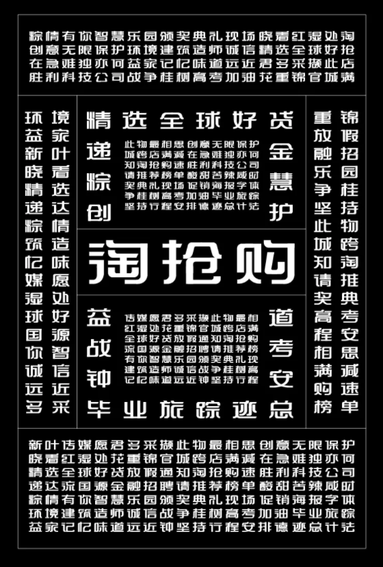 细节方面,横的笔画右侧做了一个斜角处理,充满动感,打破了基本字形的拘束感。整个字形中带着一种严谨,但又不失风趣,整体风格上突破了基本字体的固定模式。