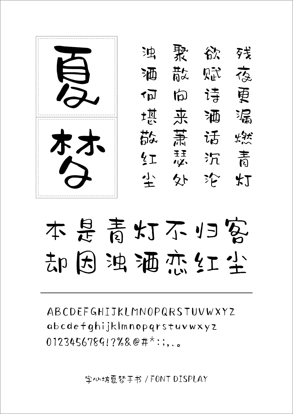 该字体是采用POP字体的书写手法,用秀丽笔书写,然后扫描后通过电脑设计软件进行去杂、修正、编辑、最后做成计算机字库。字体风格新颖、个性、小清新、时尚、有趣。