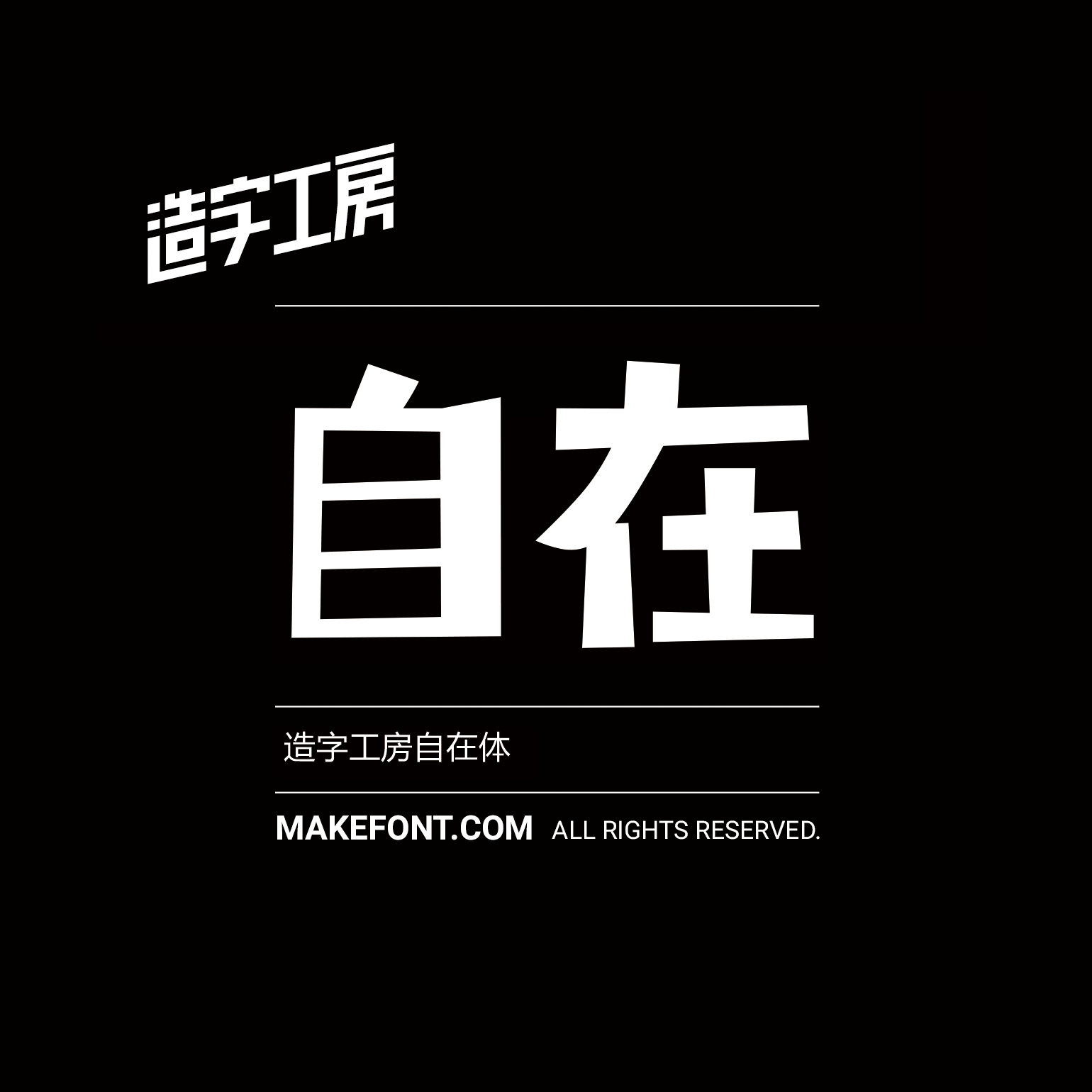 造字工房所有字库及其单字的著作权均由著作权人和造字工房品牌所属机构所有。造字工房官网(www.makefont.com)是造字工房字库产品下载的唯一合法途径。个人基于学习、研究或者欣赏目的,或任何基于公益目的,可以免费下载使用造字工房所有的字库及单字。未经依法授权,任何个人、企业及组织不得将造字工房字库及输出的单字用于任何商业目的或场景。