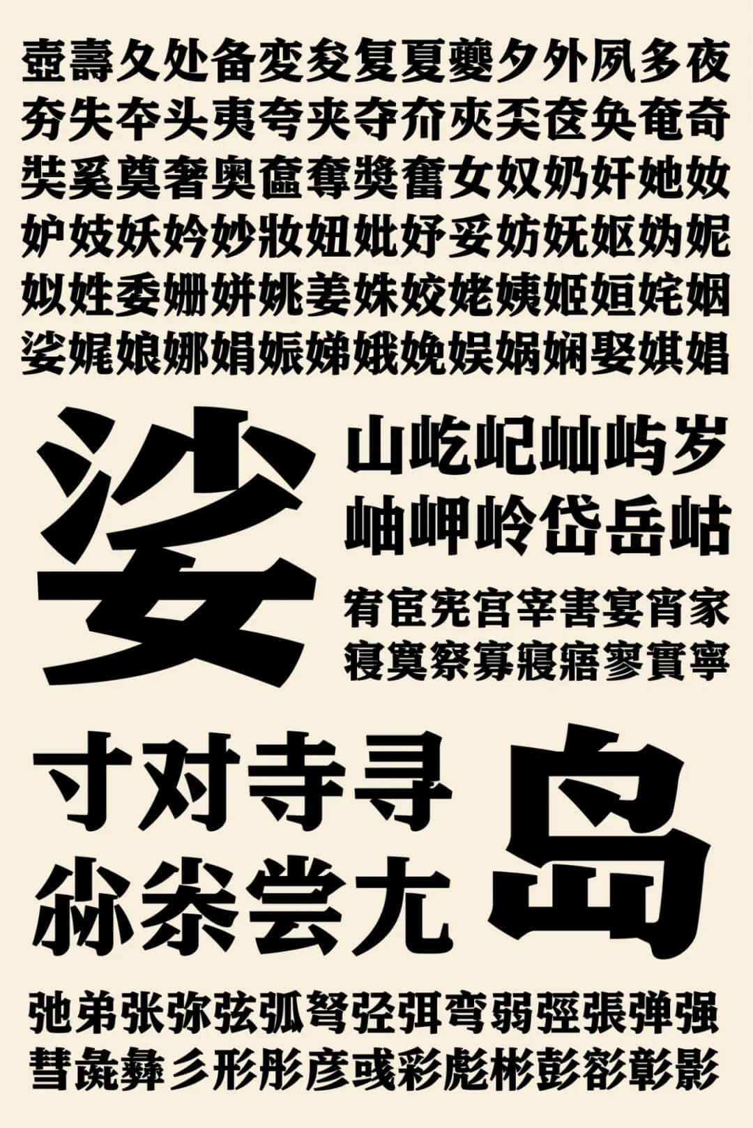 这款字体凝练了宋体字的特质,融入了设计师独特的设计概念,呈现出一种厚实稳重、气息舒展,又颇具人文气质的面貌,是一款设计精细,适用性非常强的宋体标题字。