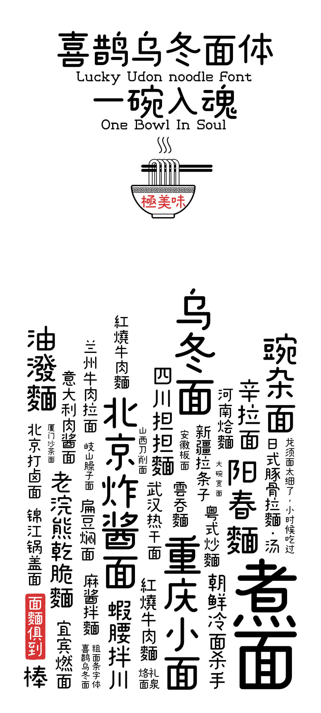 喜鹊乌冬面体(简+繁体) regular 喜鹊乌冬面体 字体介绍:传统的点状圆头美术字方法,绘制一个可爱温和风格的粗线条字,此字体的圆点构成的曲线,会很像- -...
