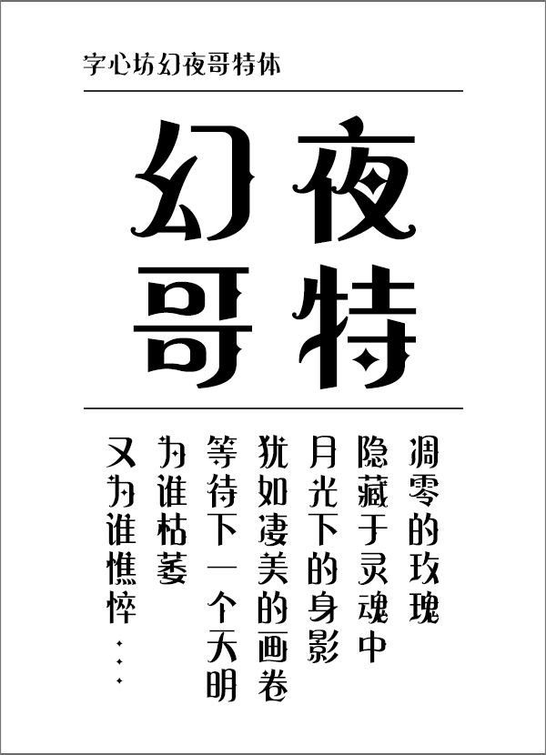 字心坊哥特体系列 该系列共分为字心坊梦幻哥特体、字心坊幻夜哥特体和字心坊暗黑哥特体3个字库。 该字体是一款哥特风字体,字体独特,新颖华丽。汉字艺术...