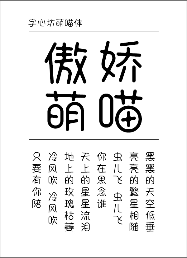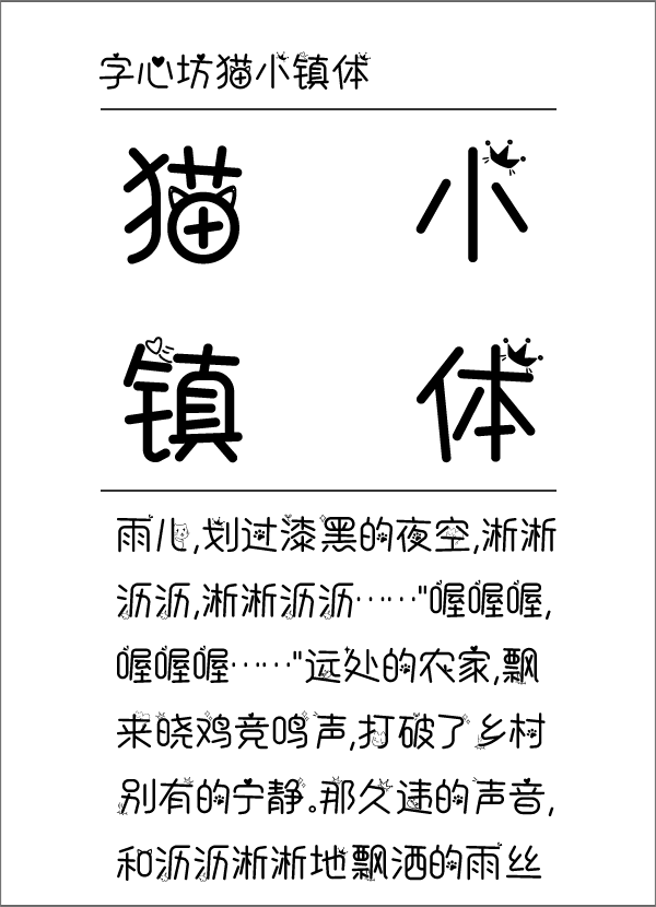字心坊猫小镇体 字体家族字心坊猫小镇体,手机字体,修改字体 商用授权商用需授权 文件大小5.04MB PostScript名称字心坊猫小镇体 风格常规 格式ttf 语言中文...