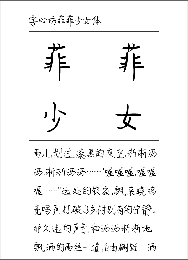 字心坊菲菲少女体 商用授权商用需授权 文件大小8.79MB PostScript名称字心坊菲菲少女体 风格Regular 格式ttf 语言中文 英文 版本Version 1.00 May 21, 2018,...